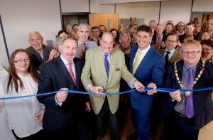 Garry Wall, Sir Nicholas Soames, Mike Oliver cutting the tape